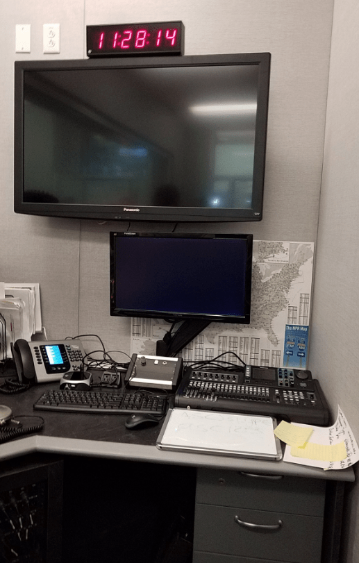 In the audio engineer’s seat… ooh, so many pretty lights :)